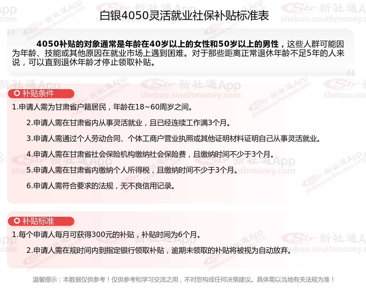一、最新白银4050社保补贴标准及条件