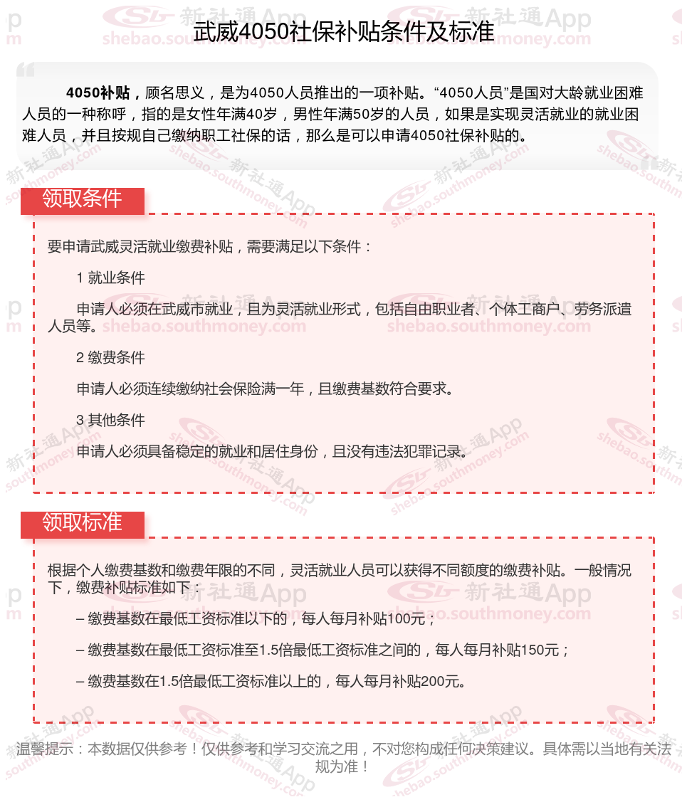 二、武威4050社保补贴标准及条件2025年,最新如下