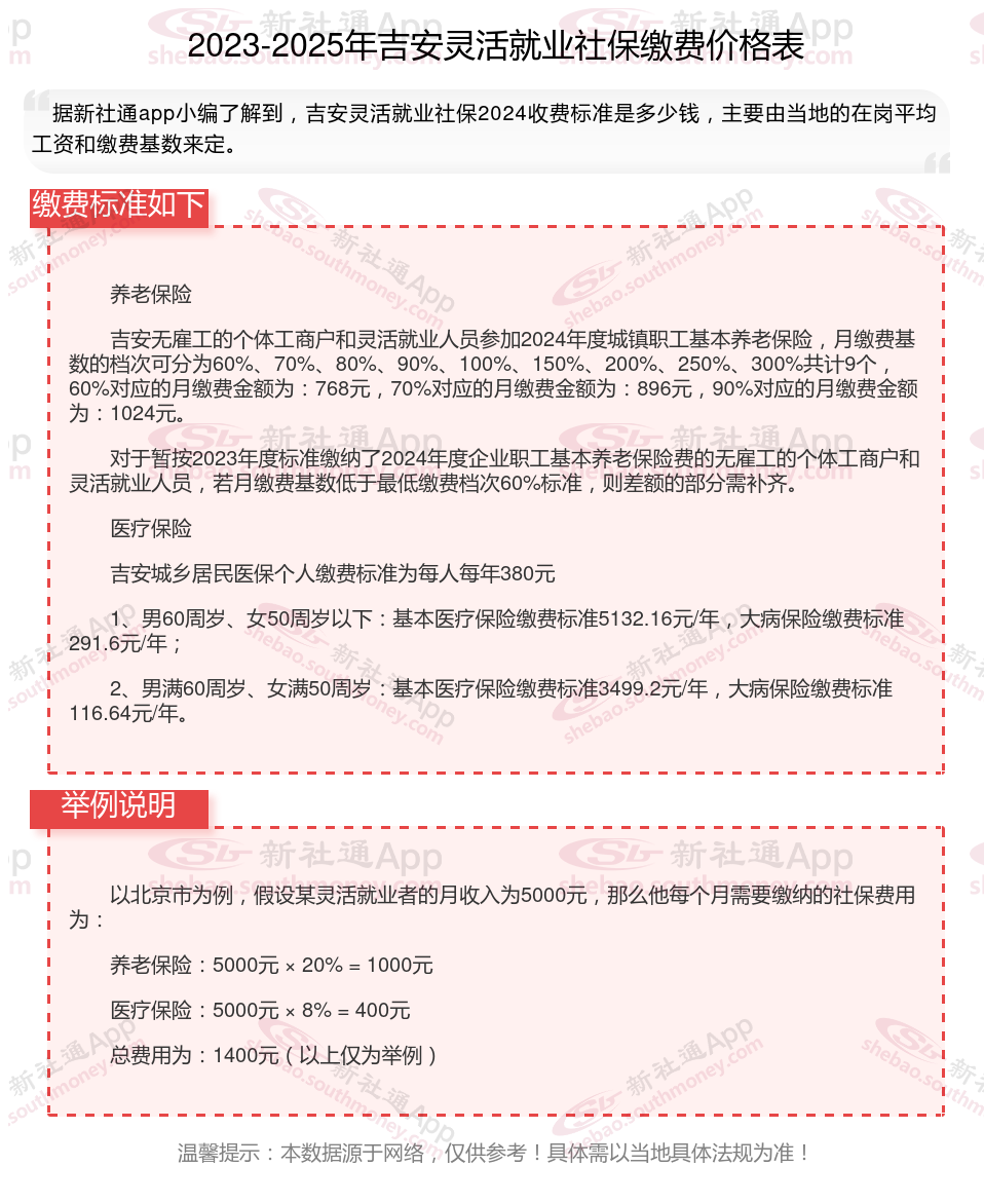 一、2025年吉安灵活就业社保缴费标准表 吉安灵活就业社保多少钱一个月?