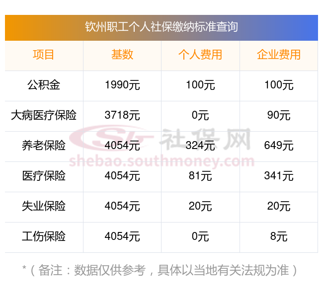 2025年钦州社保缴费标准是多少,农村户口一共交了多少年社保 下表是2025年钦州社保费用明细参考,新社通app-社保缴费查询工具提供的最新数据如下: