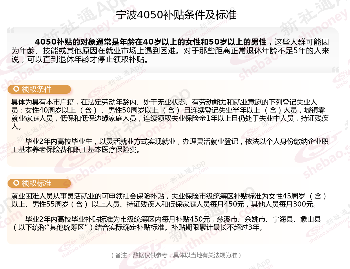 一、2025年宁波4050社保补贴标准及条件是多少?