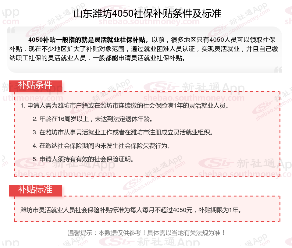 以上就是山东潍坊4050灵活就业社保补贴的相关内容,欢迎关注新社通/下载新社通app了解更多五险一金专业资讯。
