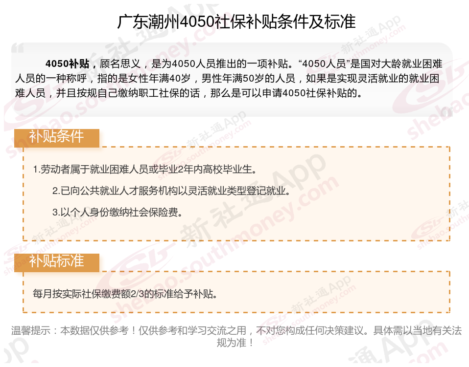 以上就是广东潮州4050灵活就业社保补贴的相关内容,欢迎关注新社通/下载新社通APP了解更多五险一金专业资讯。