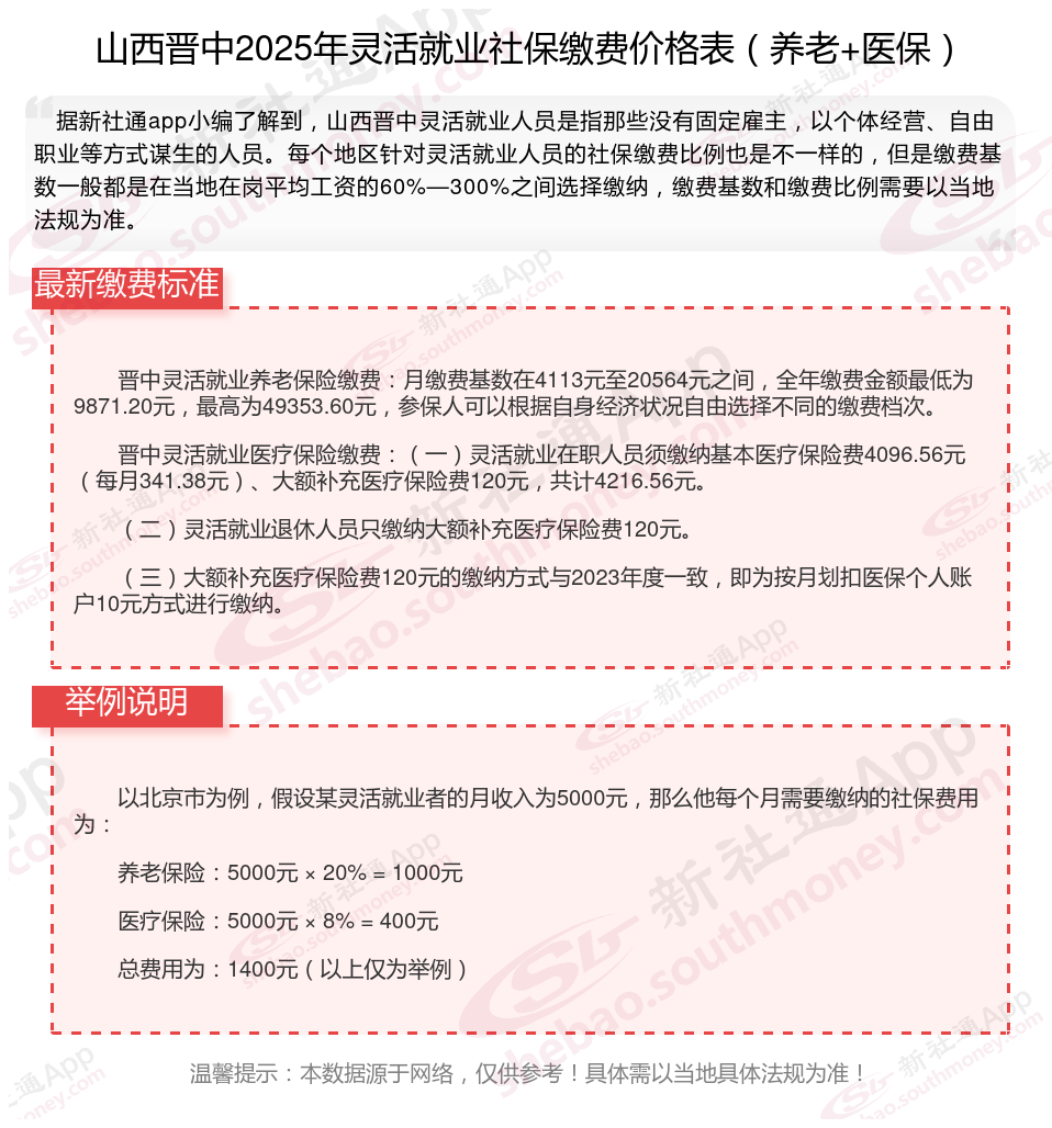 灵活就业者缴纳社保比例是多少?一般需要交多少钱一个月?根据新社通app-社保缴费查询工具提供的2025社保缴费标准详情数据: