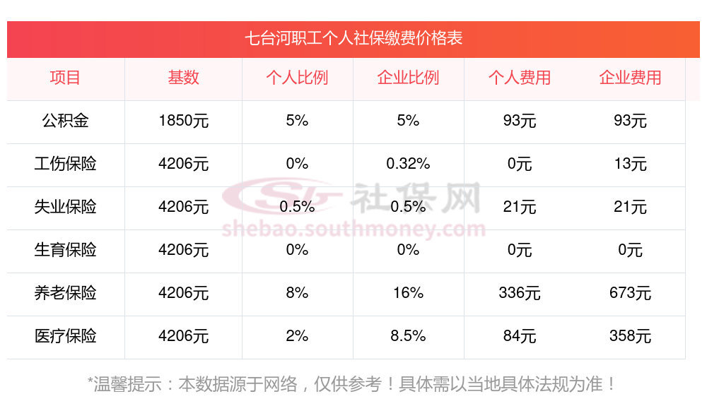 关于七台河“五险一金”缴纳比例的问题