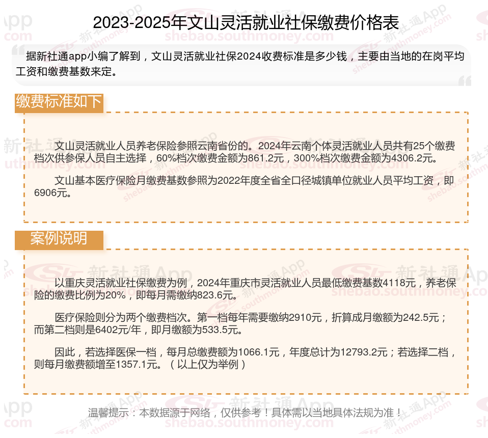 一、2025年文山灵活就业社保缴费标准公布啦 文山灵活就业社保多少钱一个月?