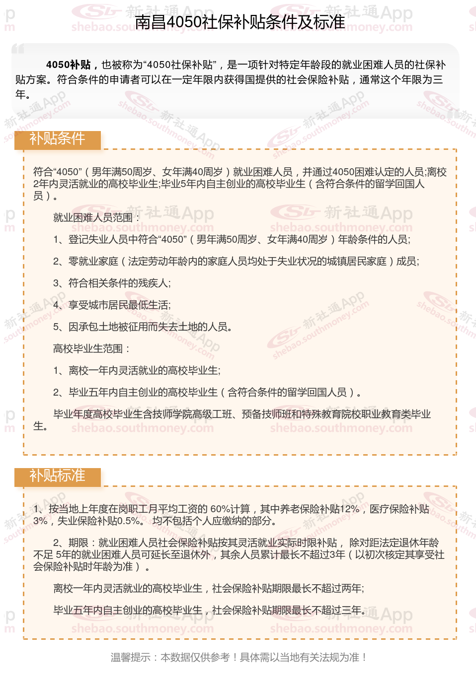 一、2025年南昌4050社保补贴新规2025年南昌4050社保补贴标准是什么,需要什么条件?
