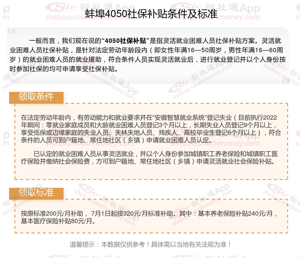 一、2025年蚌埠灵活就业4050社保补贴标准及条件是什么(灵活就业4050社保补贴多少钱)