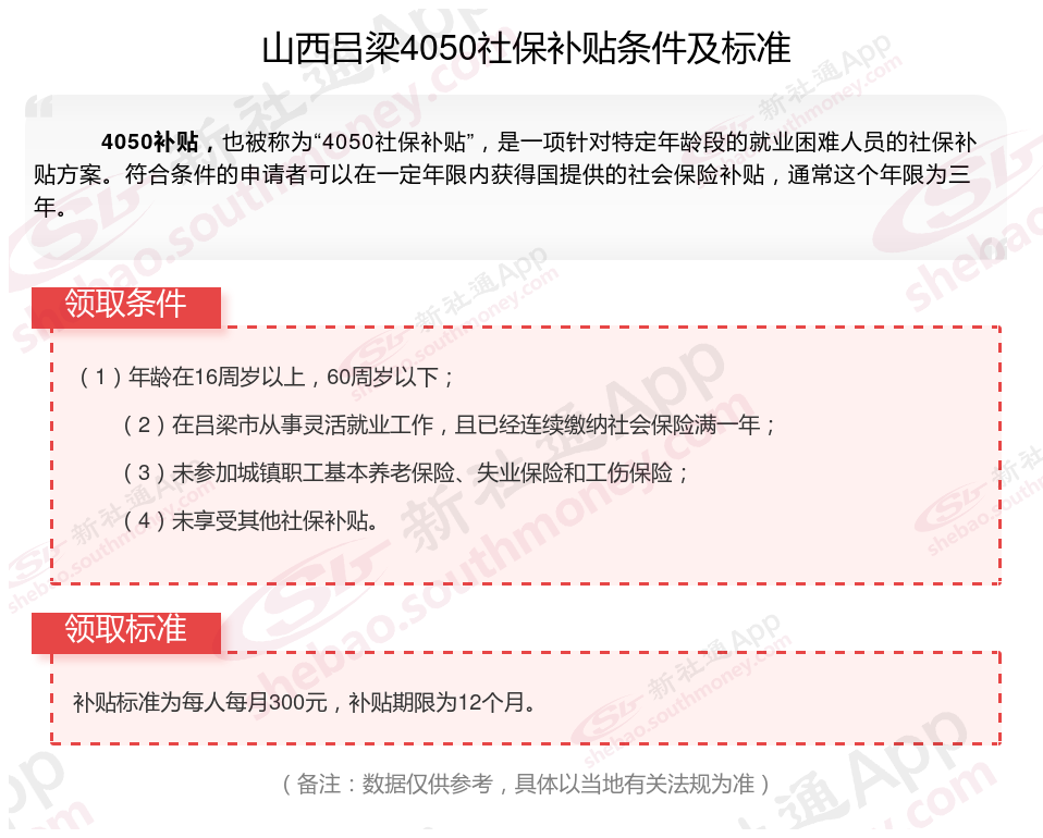 一、山西吕梁4050社保补贴标准及条件2025年最新消息