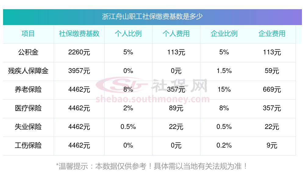 浙江舟山2025年社保缴费个人和公司各承担多少?浙江舟山五险一金每月最低交多少?下表是2025年浙江舟山社保费用明细参考,新社通app-社保缴费查询工具提供的最新数据如下: