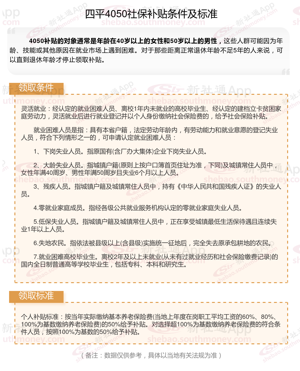 一、2023-2024年四平灵活就业4050社保补贴标准和条件是什么