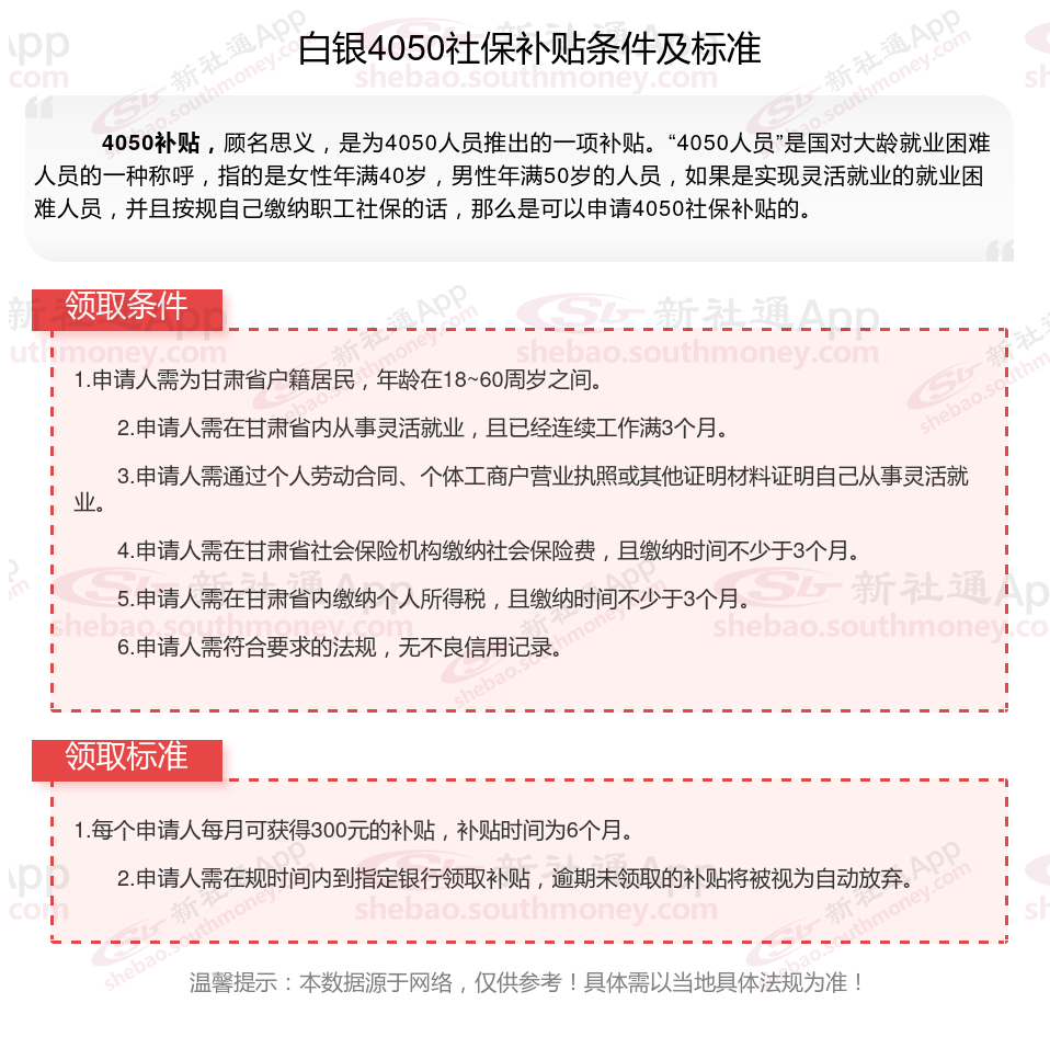 2025白银灵活就业4050社保补贴是一项面向特定年龄段的就业困难人群的社会保险补贴。