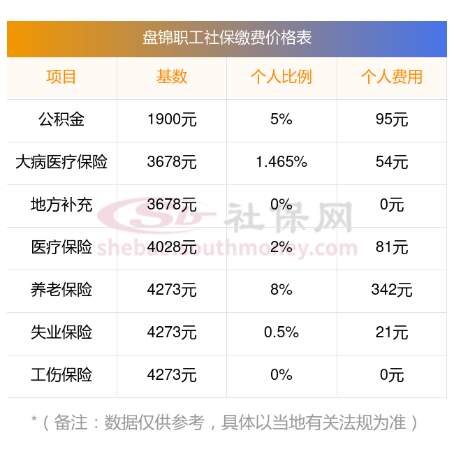 盘锦社保多少钱一个月?下面和社保网-APP一起来看看2025年盘锦最低标准社保费用明细参考,新社通app-社保缴费查询工具提供的最新数据如下: