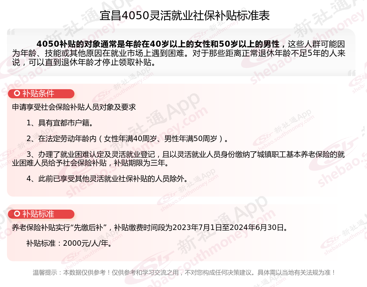 一、最新宜昌4050社保补贴标准及条件