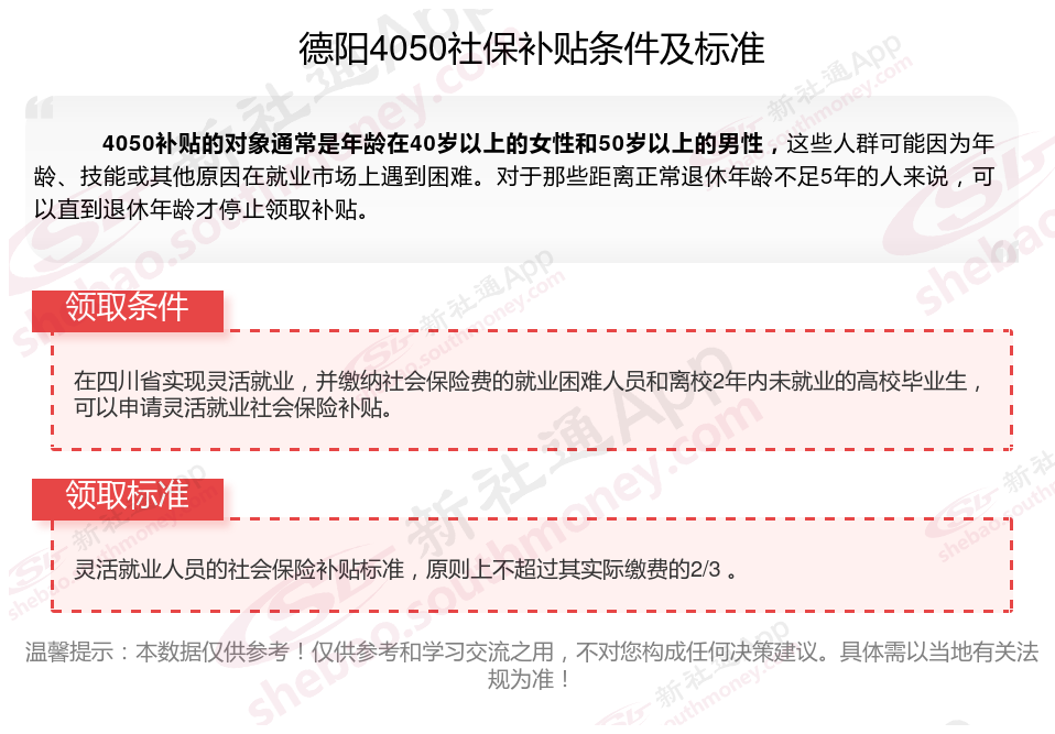 一、德阳4050社保补贴标准及条件2025年最新消息