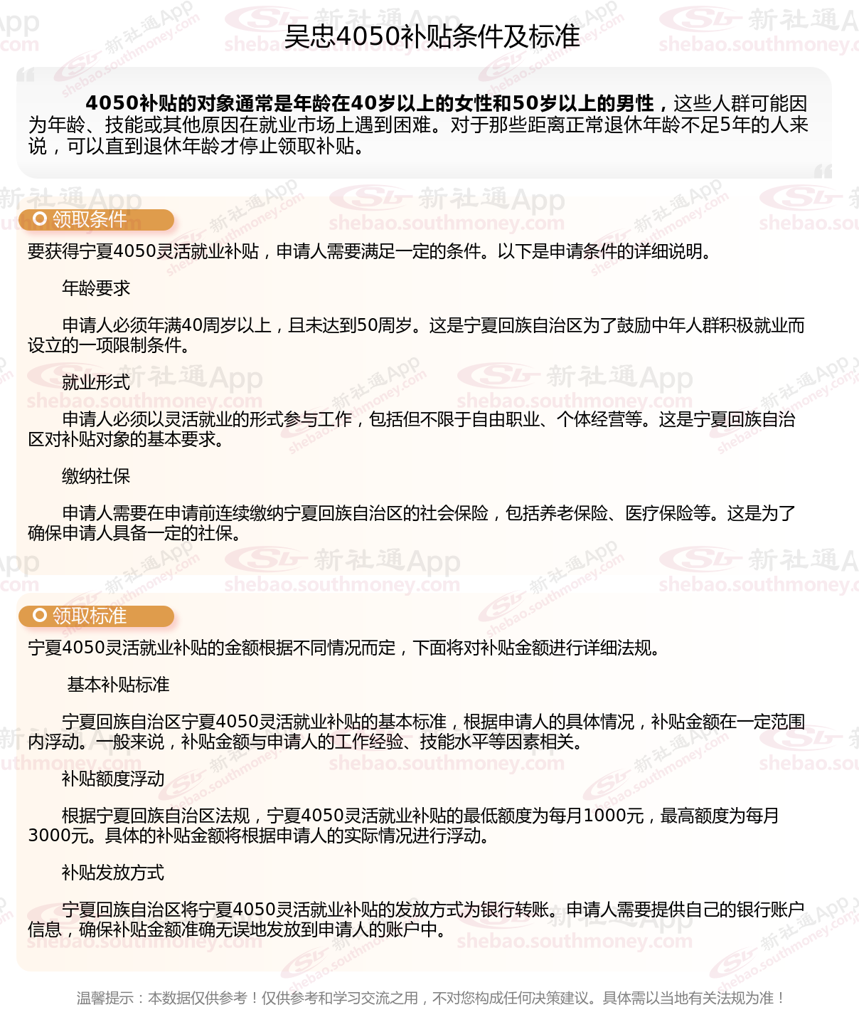 一、2025年吴忠4050社保补贴标准,最新领取条件来了