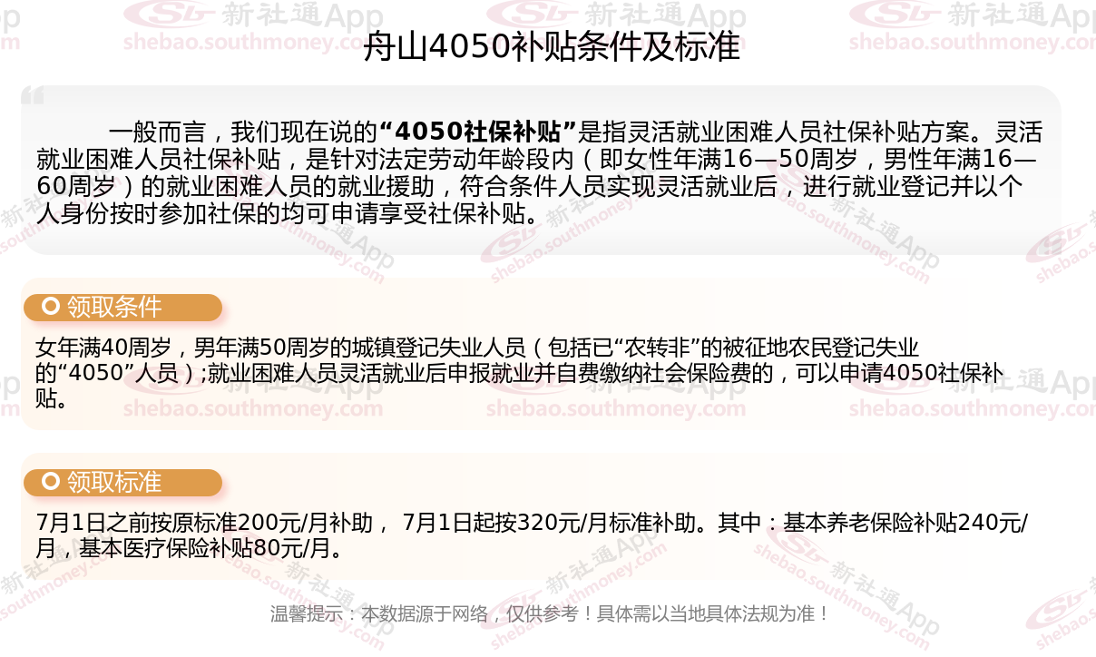 2025舟山灵活就业4050社保补贴是一项面向特定年龄段的就业困难人群的社会保险补贴。