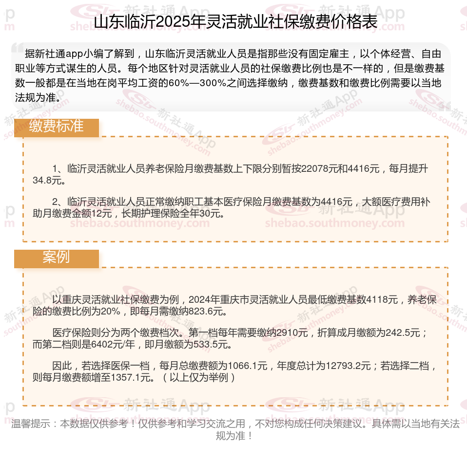 山东临沂灵活就业社保缴费标准来了 灵活就业社保最低要交多少钱?根据新社通app-社保缴费查询工具提供的最新数据如下: