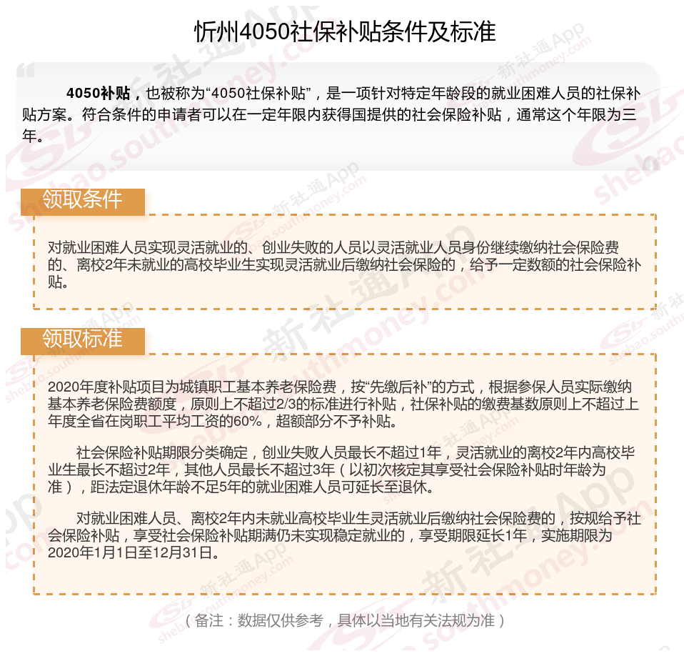 一、2025年忻州4050社保补贴标准是怎么样的?忻州4050一年可拿多少钱?