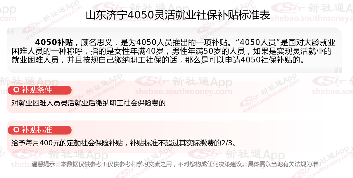 一、2025年山东济宁4050社保补贴标准是怎么样的,附领取条件