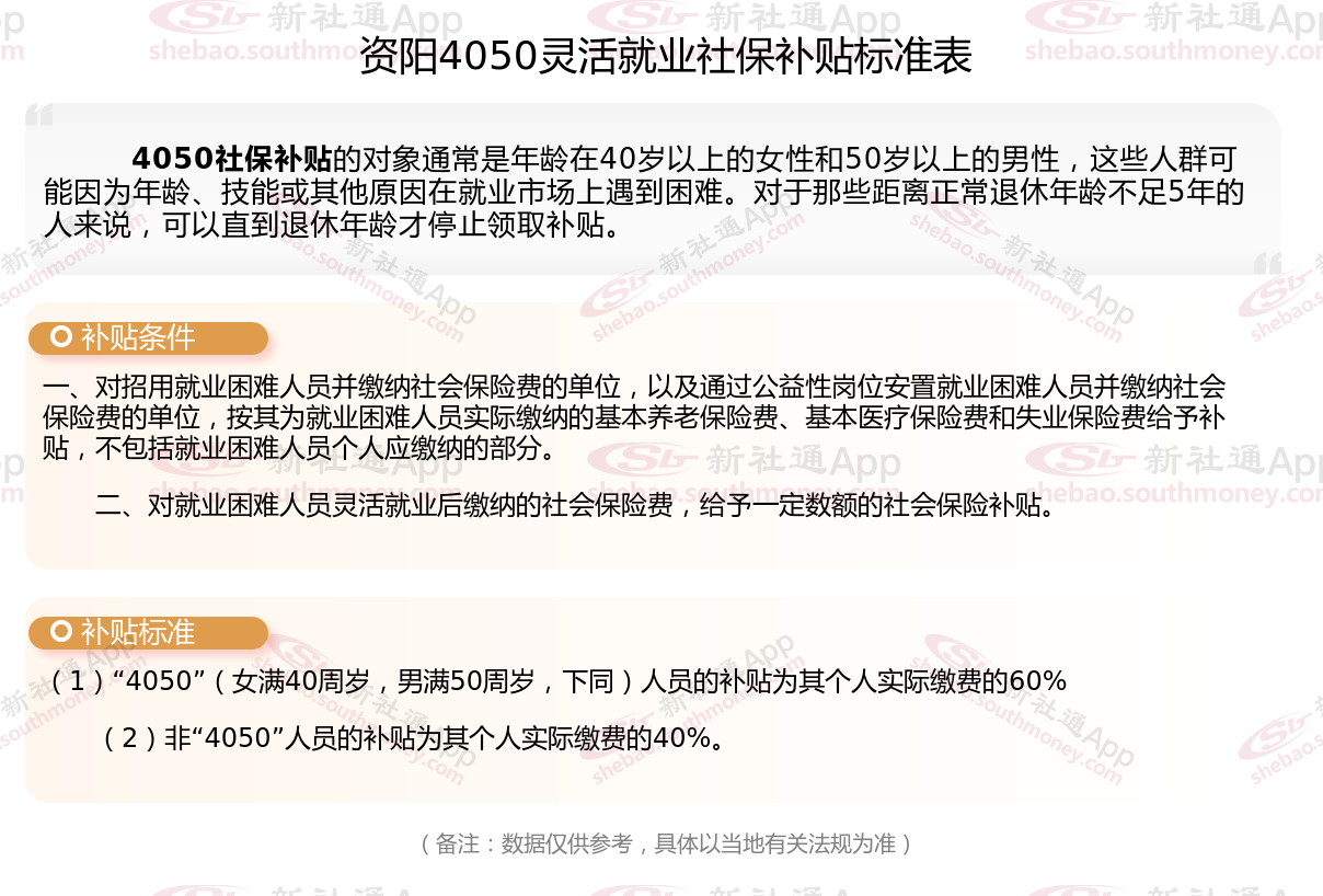 二、资阳4050社保补贴标准及条件2025年最新消息