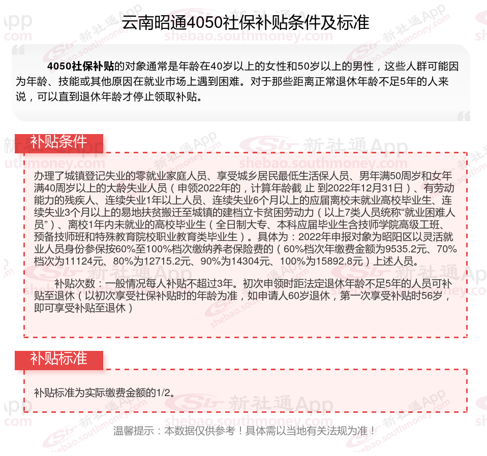 一、云南昭通4050社保补贴标准及条件2025年最新消息