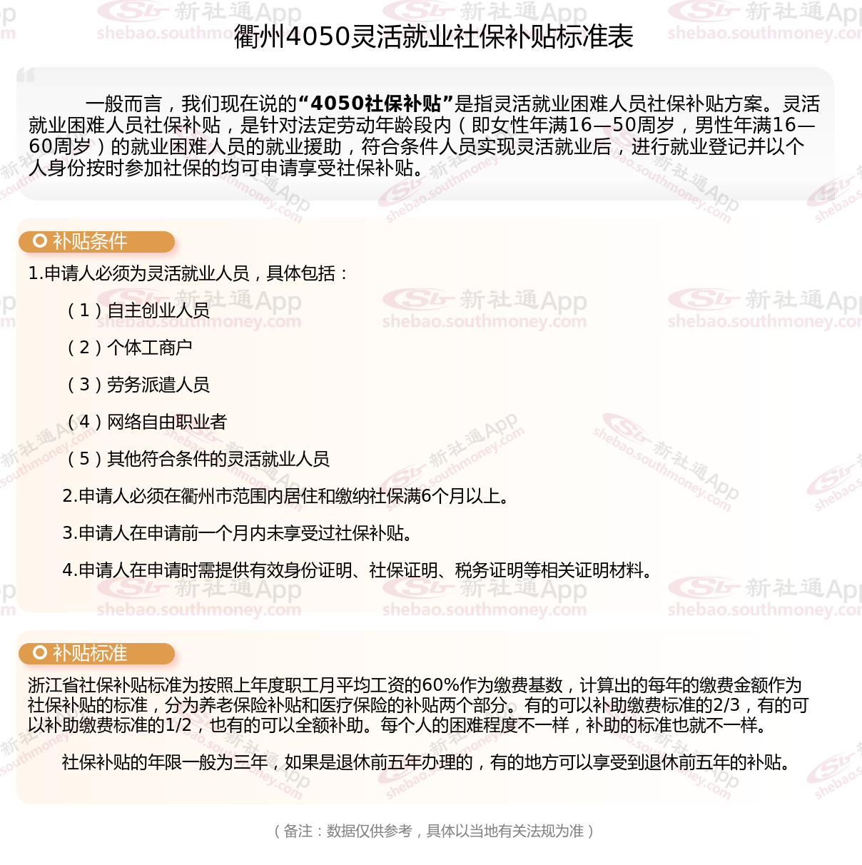以上就是衢州4050灵活就业社保补贴的相关内容,欢迎关注新社通/下载新社通APP了解更多五险一金专业资讯。