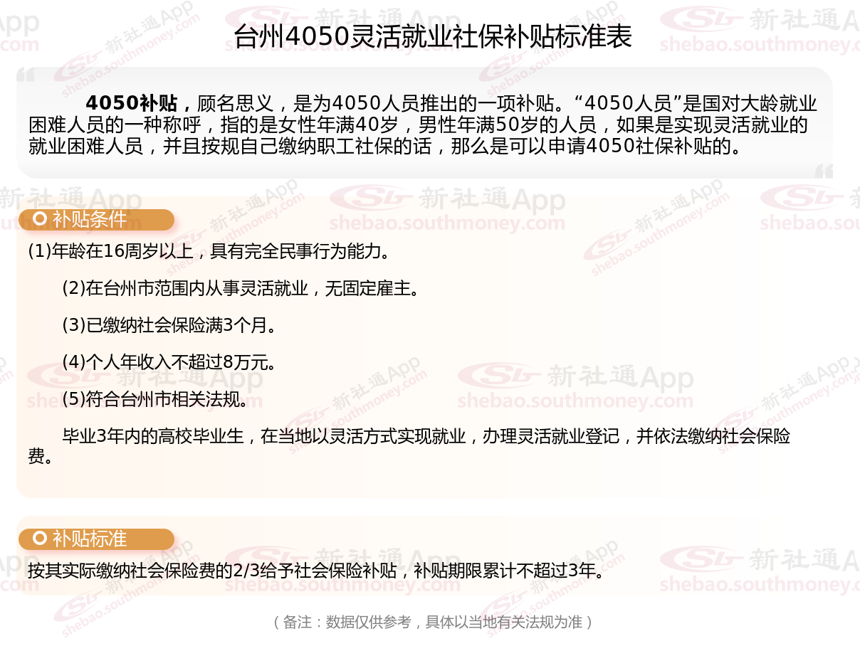 二、2025年台州灵活就业4050社保补贴标准及条件是什么?来了解一下