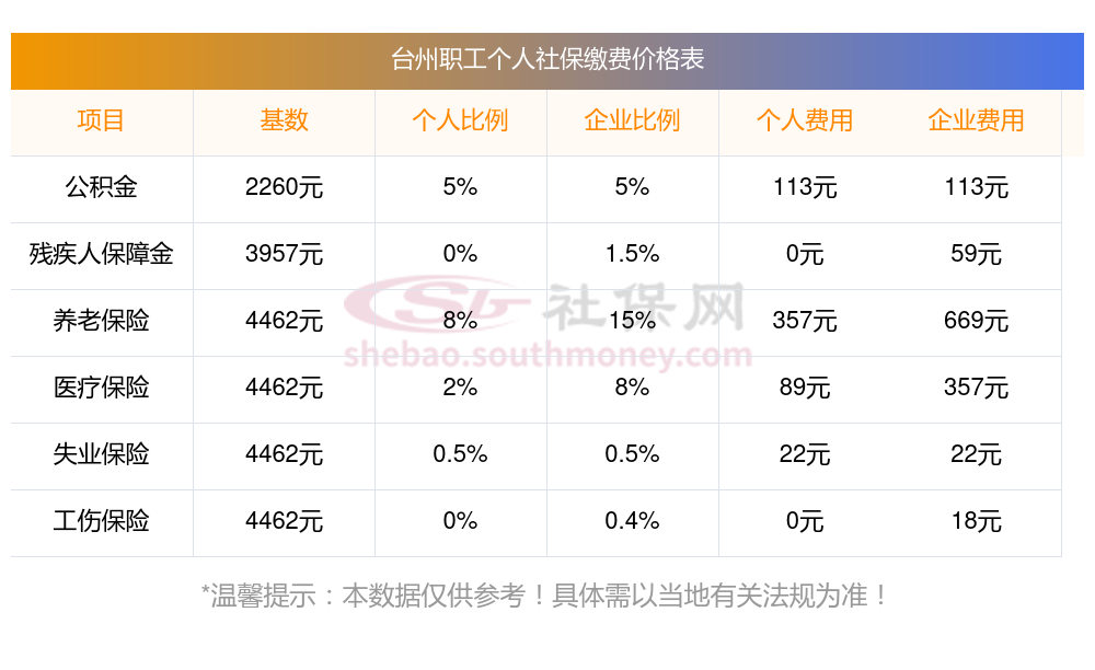浙江社保多少钱一个月?下表是2024-2025年台州社保费用明细参考,新社通app-社保缴费查询工具提供的最新数据如下: