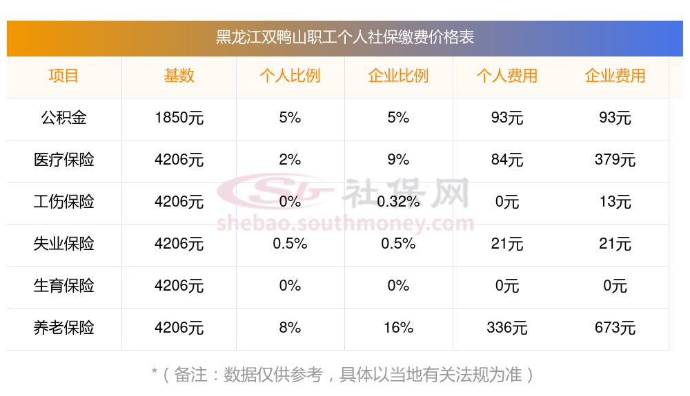2025年社保缴费价目表,下面和新社君一起来了解下2024-2025年黑龙江双鸭山最低配社保费用明细参考,新社通app-社保缴费查询工具提供的最新数据如下: