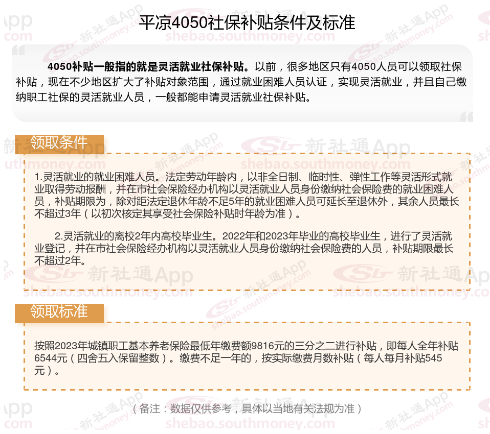 2025平凉灵活就业4050社保补贴是一项面向特定年龄段的就业困难人群的社会保险补贴。