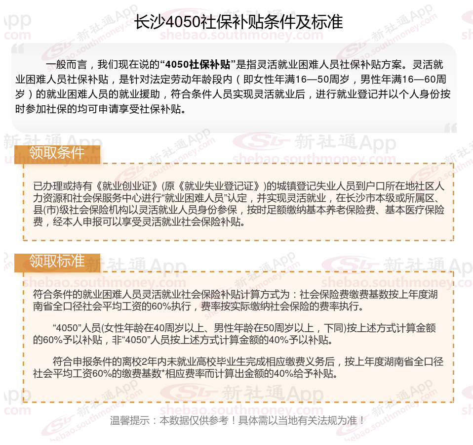 一、长沙4050社保补贴标准及条件是多少?