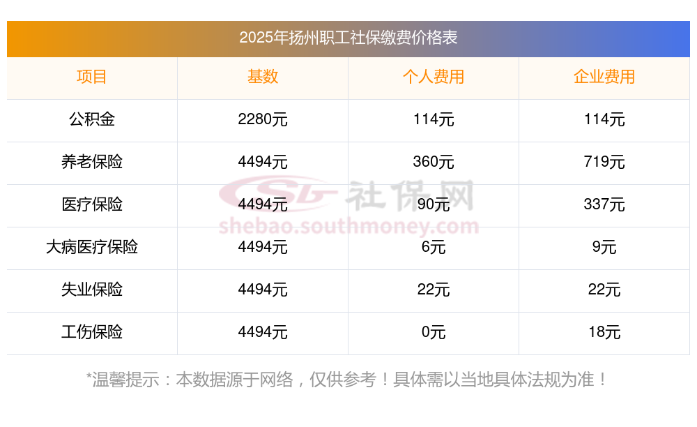 上班族五险一个月交多少钱 公司加个人是多少?下表是2024-2025年扬州社保费用明细参考,新社通app-社保缴费查询工具提供的最新数据如下: