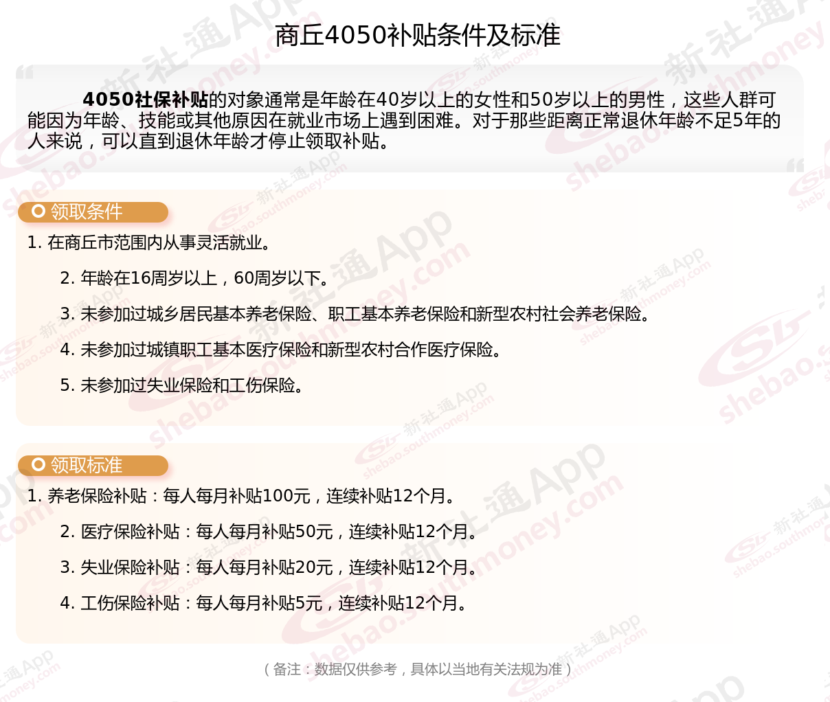 二、商丘4050社保补贴多少钱一个月?商丘4050社保补贴2025年最新标准是多少?
