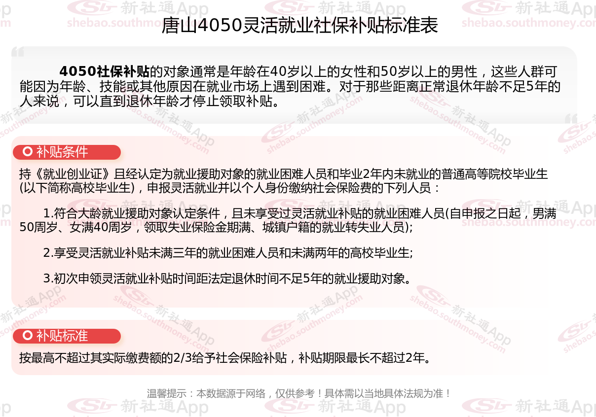 以上就是唐山4050灵活就业社保补贴的相关内容,欢迎关注新社通/下载新社通APP了解更多五险一金专业资讯。