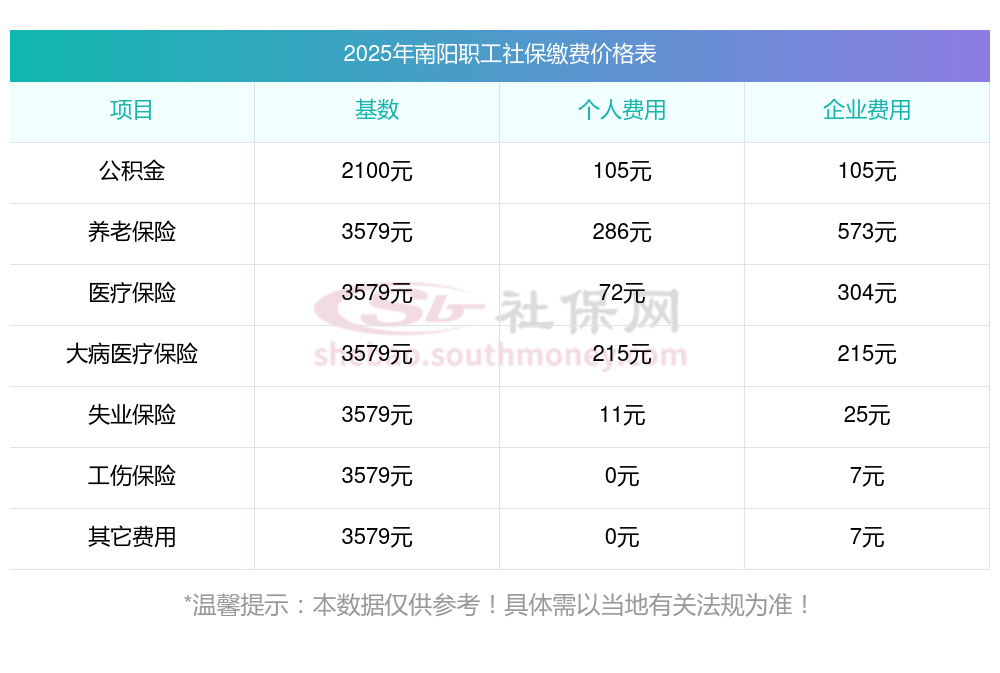 2025年南阳五险缴费标准是多少,2025年南阳社保缴费多少钱?下表是2025年南阳社保费用明细参考,新社通app-社保缴费查询工具提供的最新数据如下: