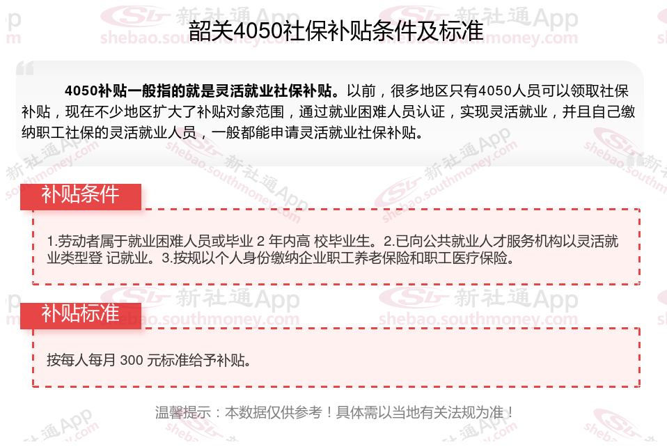二、2025年韶关4050社保补贴标准是多少?领取条件是什么?