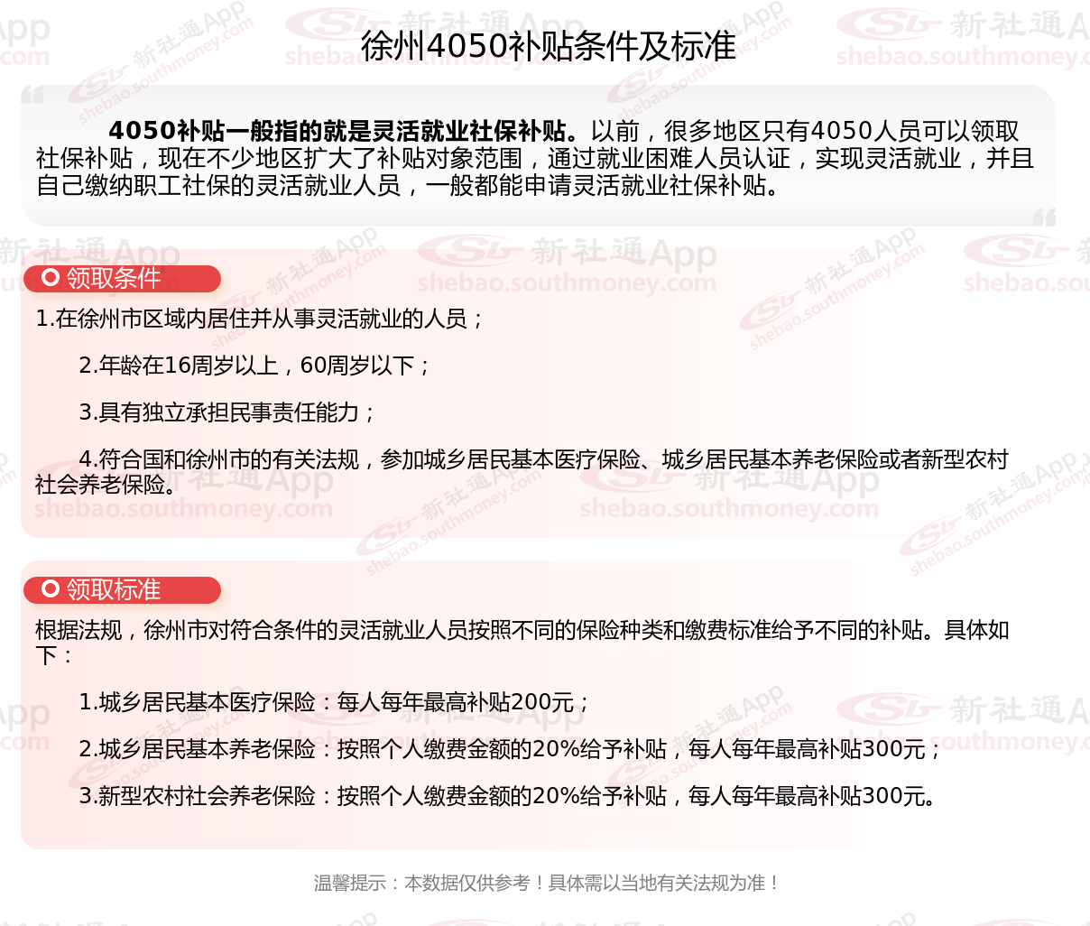 二、2025年徐州4050社保补贴标准及条件(4050社保补贴多少钱?)