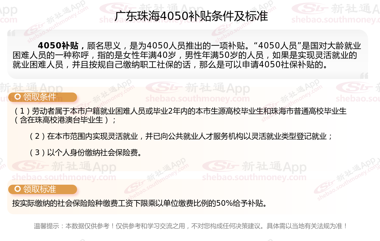 二、2025年广东珠海4050社保补贴标准是多少,最新4050社保补贴领取条件来了
