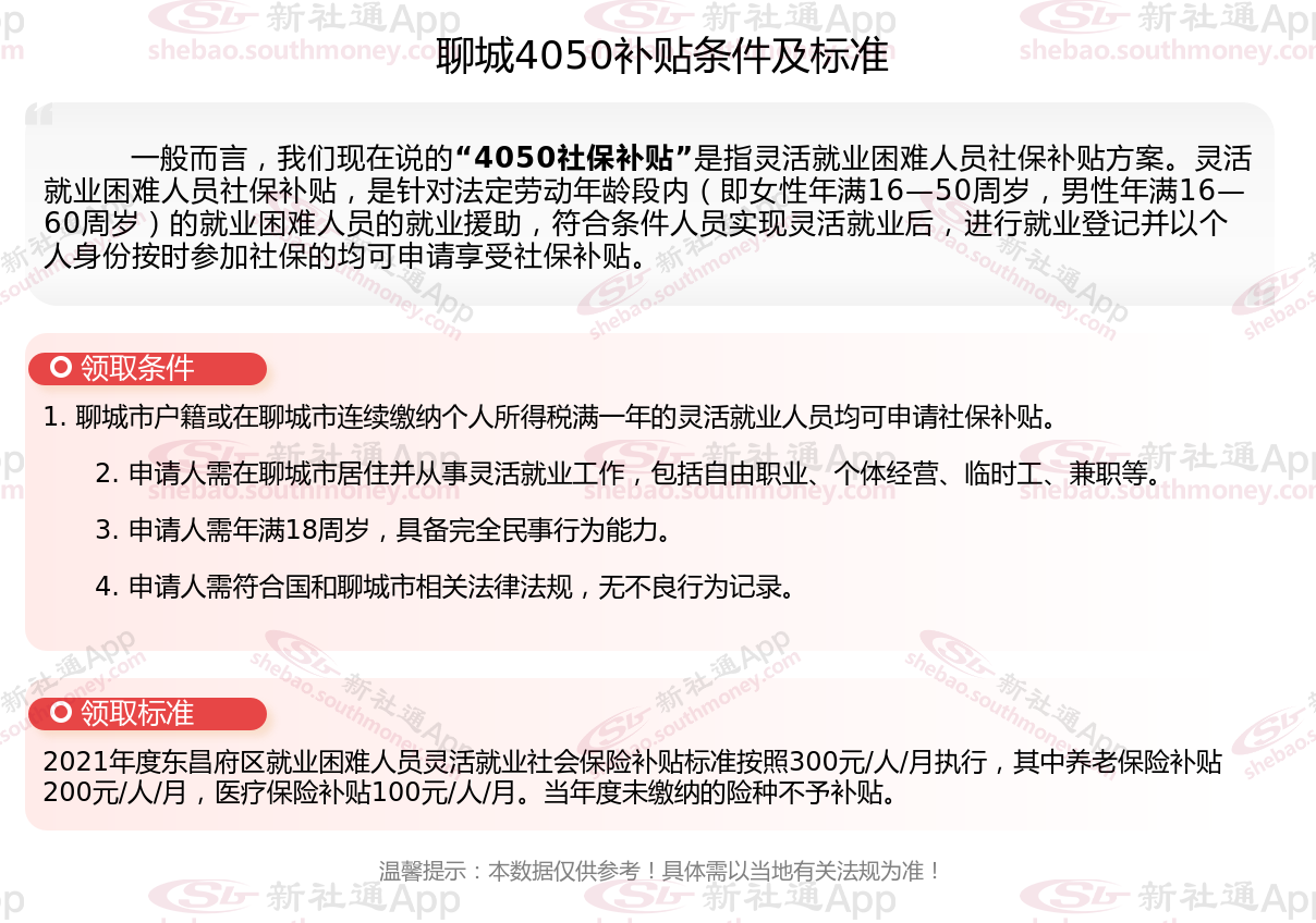 以上就是聊城4050灵活就业社保补贴的相关内容,欢迎关注新社通/下载新社通APP了解更多五险一金专业资讯。