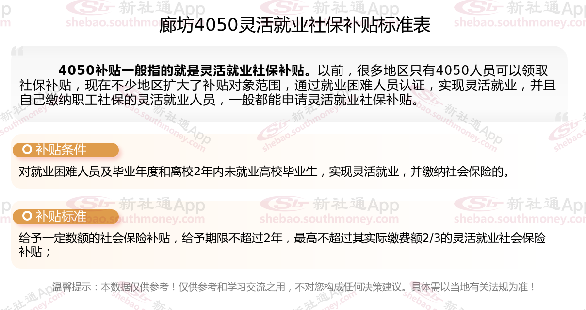 以上就是廊坊4050灵活就业社保补贴的相关内容,欢迎关注新社通/下载新社通APP了解更多五险一金专业资讯。