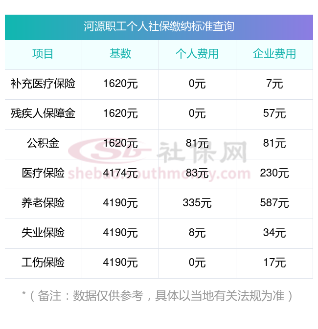 在职人员五险一个月交多少钱 公司加个人是多少?下表是2024-2025年河源社保费用明细参考,新社通app-社保缴费查询工具提供的最新数据如下: