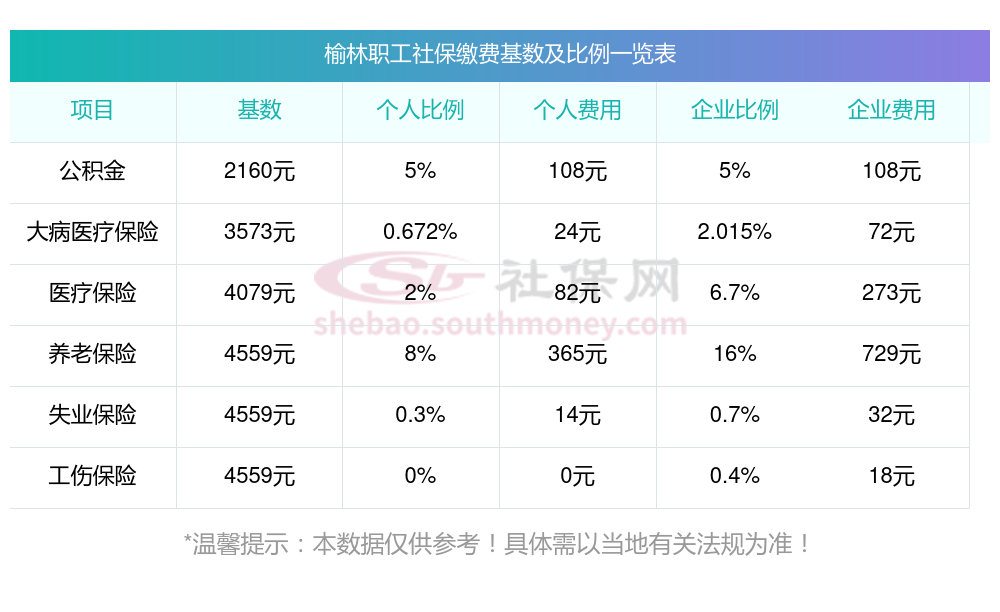 2025年榆林社保缴费多少钱?下表是2024-2025年榆林社保费用明细参考,新社通app-社保缴费查询工具提供的最新数据如下: