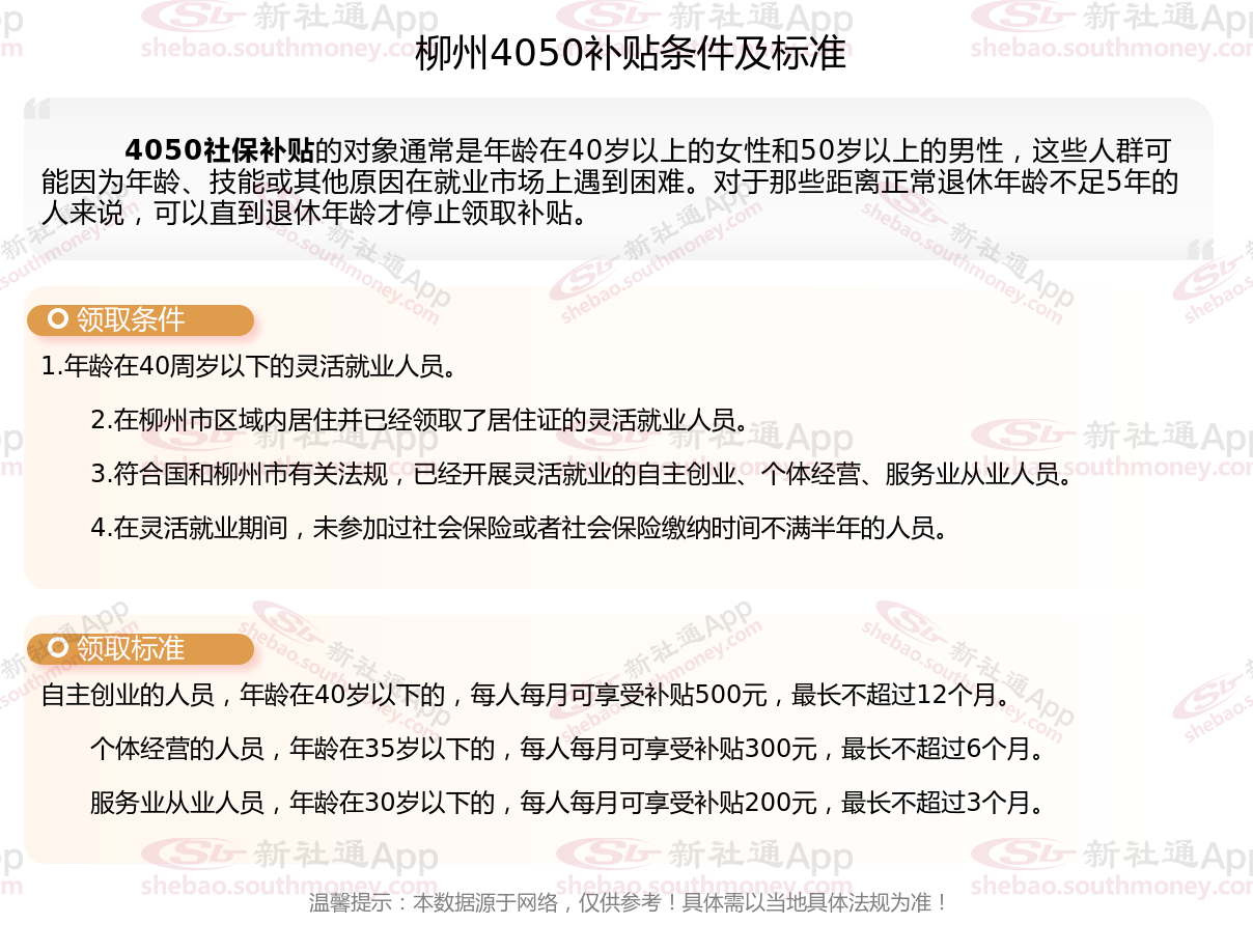 二、柳州4050社保补贴标准及条件2025年,最新如下