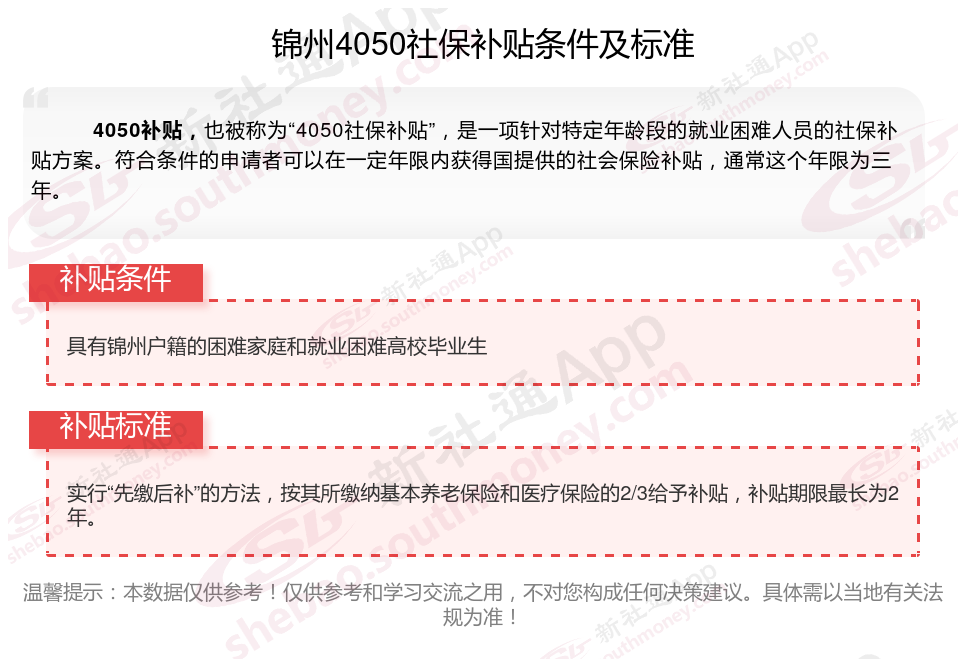 二、锦州4050社保补贴标准及条件(2025年最新)