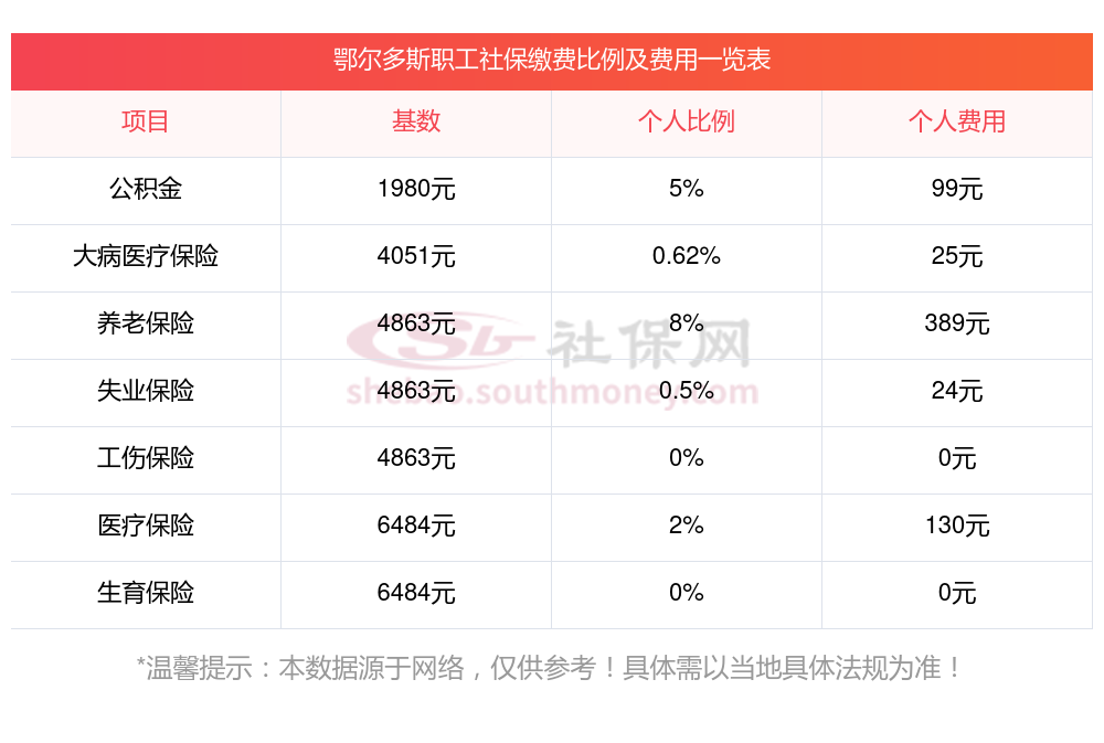 社保可以自己缴纳吗?鄂尔多斯社保多少钱一个月?下面和新社丫丫一起来看看鄂尔多斯最低标准社保费用明细参考,新社通app-社保缴费查询工具提供的最新数据如下: