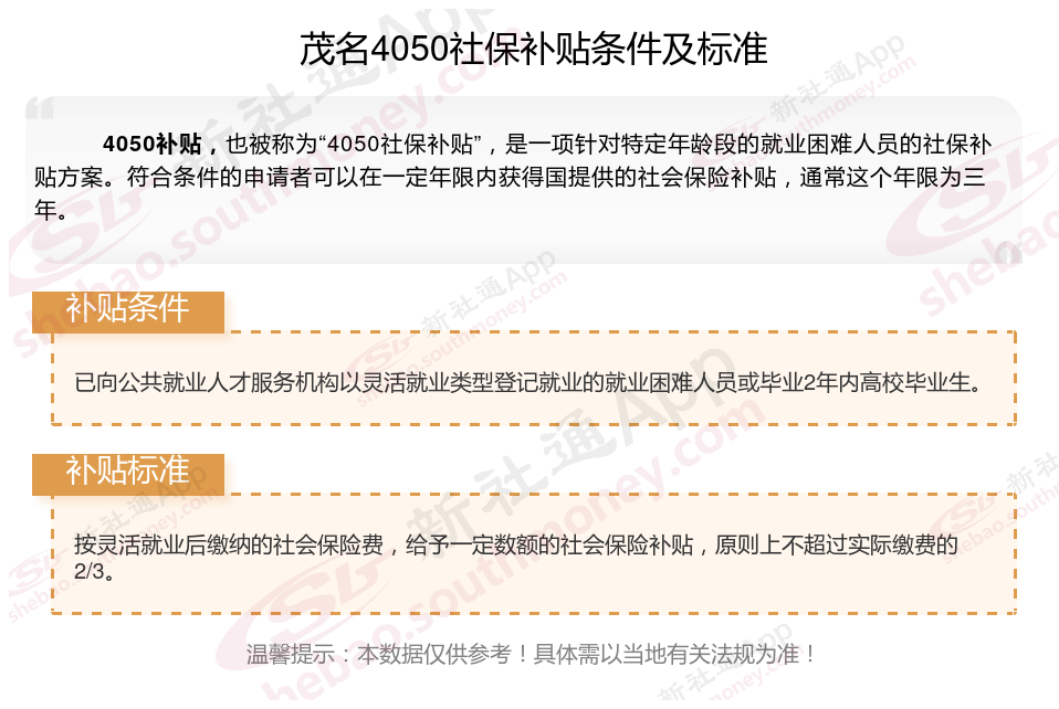 一、2025年茂名4050社保补贴标准是怎么样的,附领取条件