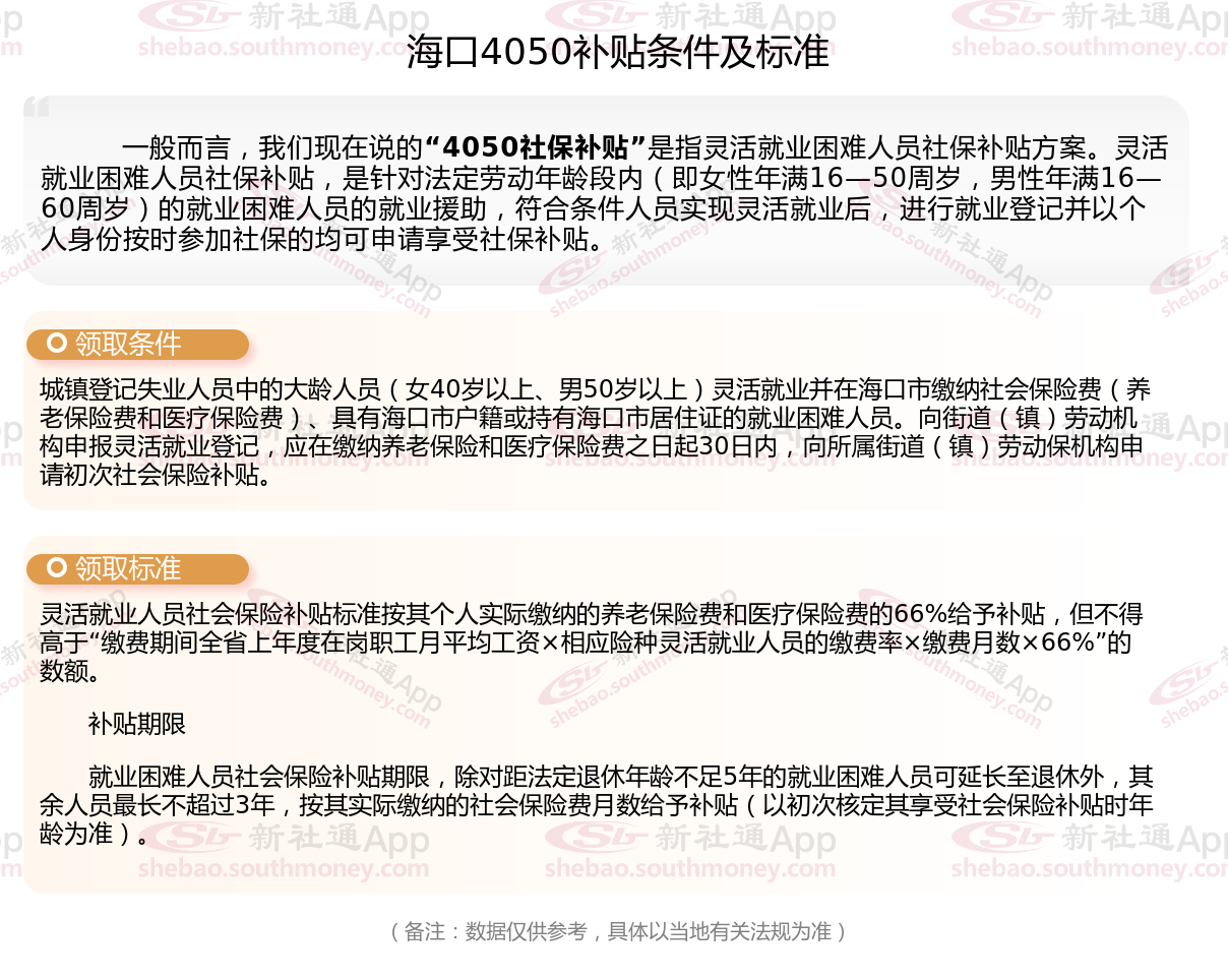 二、2025年海口4050社保补贴标准及条件(4050社保补贴多少钱?)