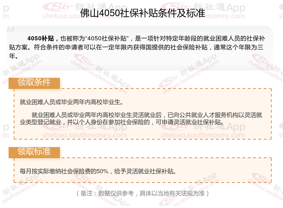 一、2025年佛山灵活就业4050社保补贴标准是多少?申请条件是什么?