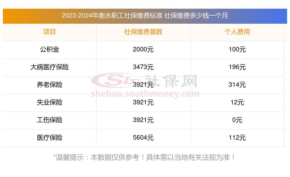 2025年衡水社保缴费标准是多少,农村社保要交多少年 下表是2025年衡水社保费用明细参考,新社通app-社保缴费查询工具提供的最新数据如下:
